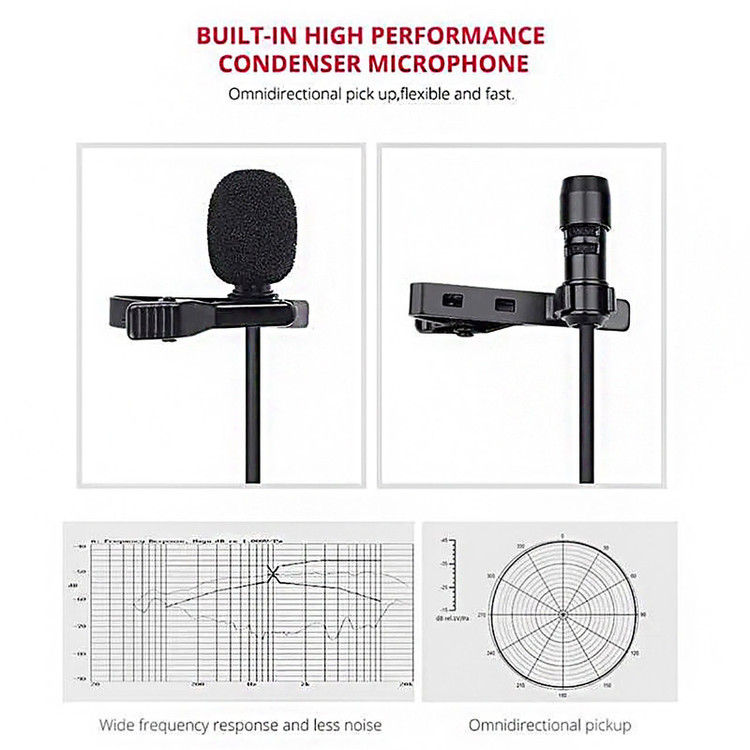 میکروفون یقه ای آیفون با پورت لایتنینگ برند Lavalier مدل JH-041 از جمله ی میکروفون های با کیفیت بالا جهت اتصال به انواع گوشی موبایل آیفون می باشد که با وزن سبک و کیفتی قابل قبول مناسب کلاس های آنلاین و سمینار های مجازی می باشد. میکروفون یقه ای برند Lavalier مدل JH-041 از نوع کندانسر الکتریکی بوده که توسط درگاه Lightning به ورودی گوشی موبایل متصل می شود.