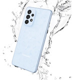 در نمای پشتی هم طراحی آشنایی را شاهد هستیم. چهار سنسور دوربین این گوشی در معماری مستطیلی شکلی کنار یکدیگر قرار گرفتهاند. در این قسمت خبری از حضور قابلیت امنیتی حسگر اثر انگشت نیست و این قابلیت بسیار جذاب همانند بسیاری از گوشیهای هوشمند پرچمدار، زیر صفحهنمایش قرار گرفته است. سنسور حسگر اثر انگشت اپتیکال در نظر گرفته شده برای این گوشی هوشمند با توجه به تستهای انجام شده، توانایی ارائه عملکرد بسیار خوب و البته سریعی در قفلگشایی صفحهنمایش دارد. متریال بسیار باکیفیت هم سبب شده تا نه تنها این گوشی وزن بسیار مناسب ۱۸۹ گرمی را با خود بههمراه داشته باشد که HANDS_ON بسیار جذابی دارد، بلکه سبب شده تا سامسونگ Galaxy A53 5G توانایی پشتیبانی از استاندارد ضدآب IP67 را داشته باشد (توانایی قرارگیری در عمق ۱ متر آب و مدت زمان ۳۰ دقیقه).