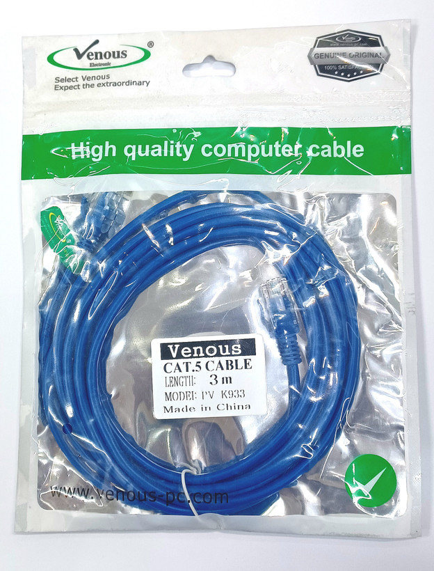 نوع کابل : پچ کورد شبکه ✔گروه کانکتور : CAT5 ✔طول کابل : 3 متر ✔ساختار کابل : UTP ✔نوع کانکتور : RJ45 (مناسب CAT5) ✔دارای محافظ گیره کانکتور ✔موارد استفاده : خطوط تلفن، اینترنت منزل و اینترنت محل کار