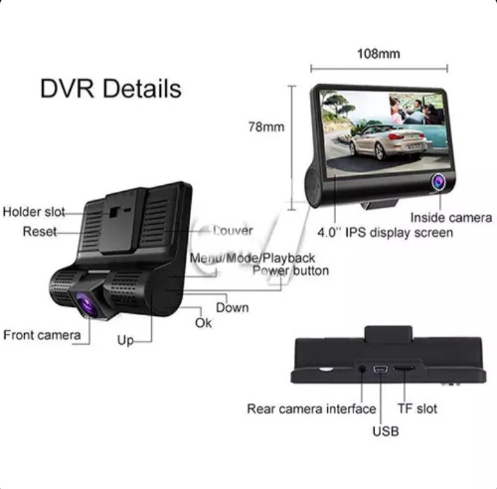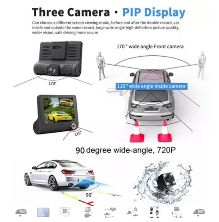 با سه دوربین برای ضبط، دوربین جلو Full HD 1080P، دوربین دید عقب 720P و دوربین داخلی 480P است، می تواند در هر نقطه از ماشین شما و داخل ماشین شما ضبط کند.